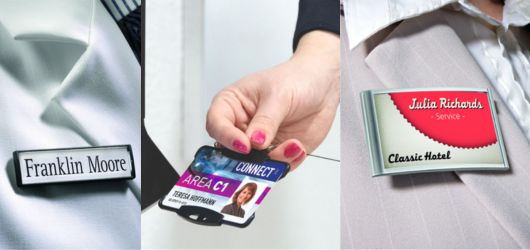 A kiállítások, hotelek, éttermek, hivatalok, bankok, biztosítótársaságok, egészségügyi intézmények, kereskedelmi központok és a vállalati recepciók számára a névkitűzők nélkülözhetetlen eszközei a személyes kapcsolatoknak - egy sikeres kommunikáció alapját fektetik le.