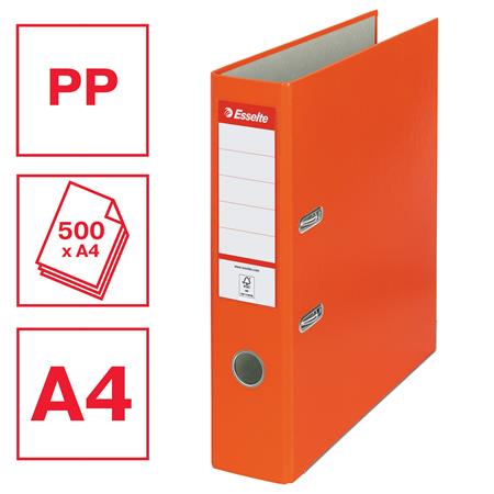Iratrendező, 75 mm, A4, PP/karton, élvédő sínnel, ESSELTE "Economy", narancssárga