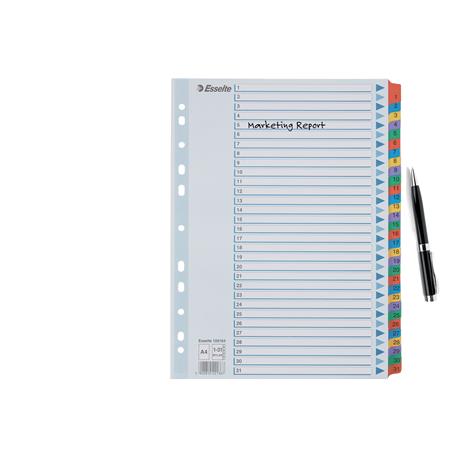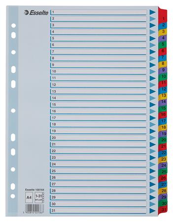 Regiszter, karton, A4, 1-31, ESSELTE "Mylar"