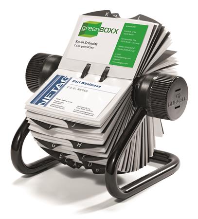 Névjegykártyatartó, fém, 400 db-os, forgatható, fekvő, DURABLE, "VISIFIX®", fekete