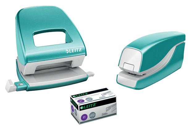 Tűzőgép, elektromos, No.10, 10 lap, LEITZ "Wow", jégkék