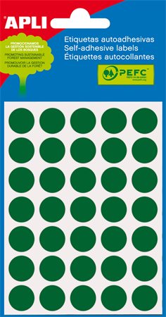 Etikett, 13 mm kör, kézzel írható, színes, APLI, zöld 175 etikett/csomag