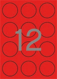 Etikett, 60 mm kör, színes, APLI, neon piros, 240 etikett/csomag