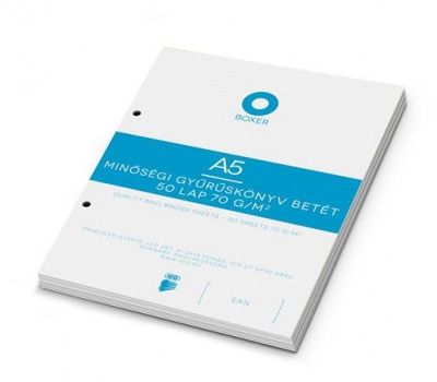 Gyűrűs könyv betét, A5, kockás, 50 lap, BOXER, fehér