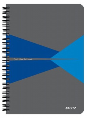 Spirálfüzet, A5, vonalas, 90 lap, laminált karton borító, LEITZ "Office", szürke-kék