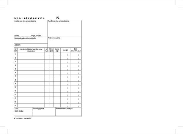 KezdőlapIrodaszerekIrodai papíráruNyomtatványokNyomtatvány, szállítólevél, 50x2, A5, VICTORIA PAPER "B.10-70", 10 tömb/csomag