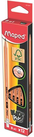 Grafitceruza radírral, B, háromszögletű, MAPED "Black`Peps"