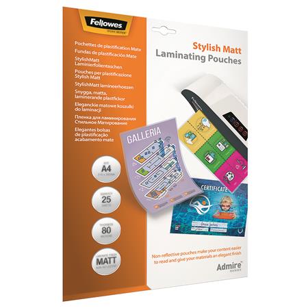 Meleglamináló fólia, 80 mikron, A4, matt, 25 db, FELLOWES "Admire Stylish"
