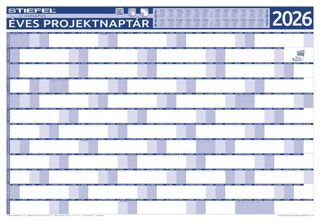 Éves tervező és projekt naptár, kétoldalas, fémléces, kék színű filctollal, 70x100 cm, 2026 évi, STIEFEL