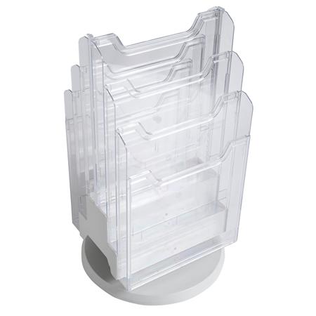 Asztali prospektustartó A4-es méretű dokumentumokhoz.
