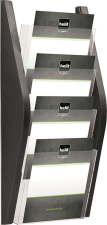 Katalógustartó, fali, A4, 4 rekeszes, HELIT, fekete