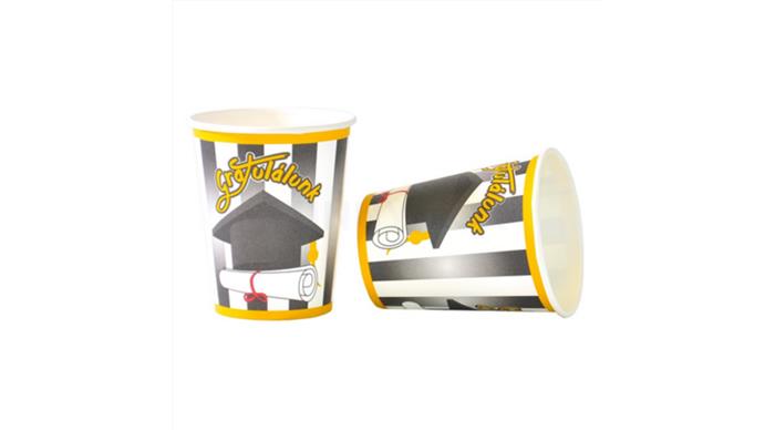 Pohár, papír, "Gratulálunk!"