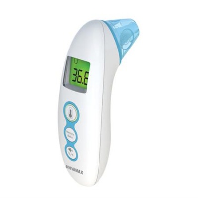 Infravörös technológiával működő hőmérő, amivel könnyedén mérheti a testhőmérsékletet akár a fülben, akár a homlok elé tartva.