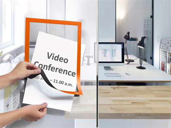 Infokeret, A4, öntapadó háttal, DURABLE "DURAFRAME®", narancs
