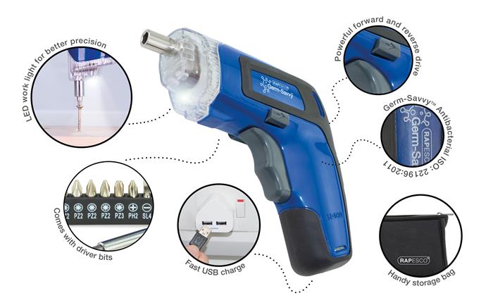 Csavarbehajtó, vezeték nélküli, antibakteriális, RAPESCO, kék