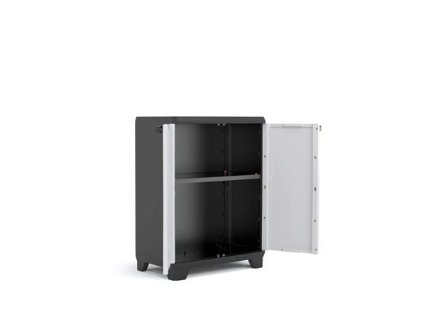Szerszámtároló szekrény, alacsony, műanyag, KETER "Linear", fekete-szürke